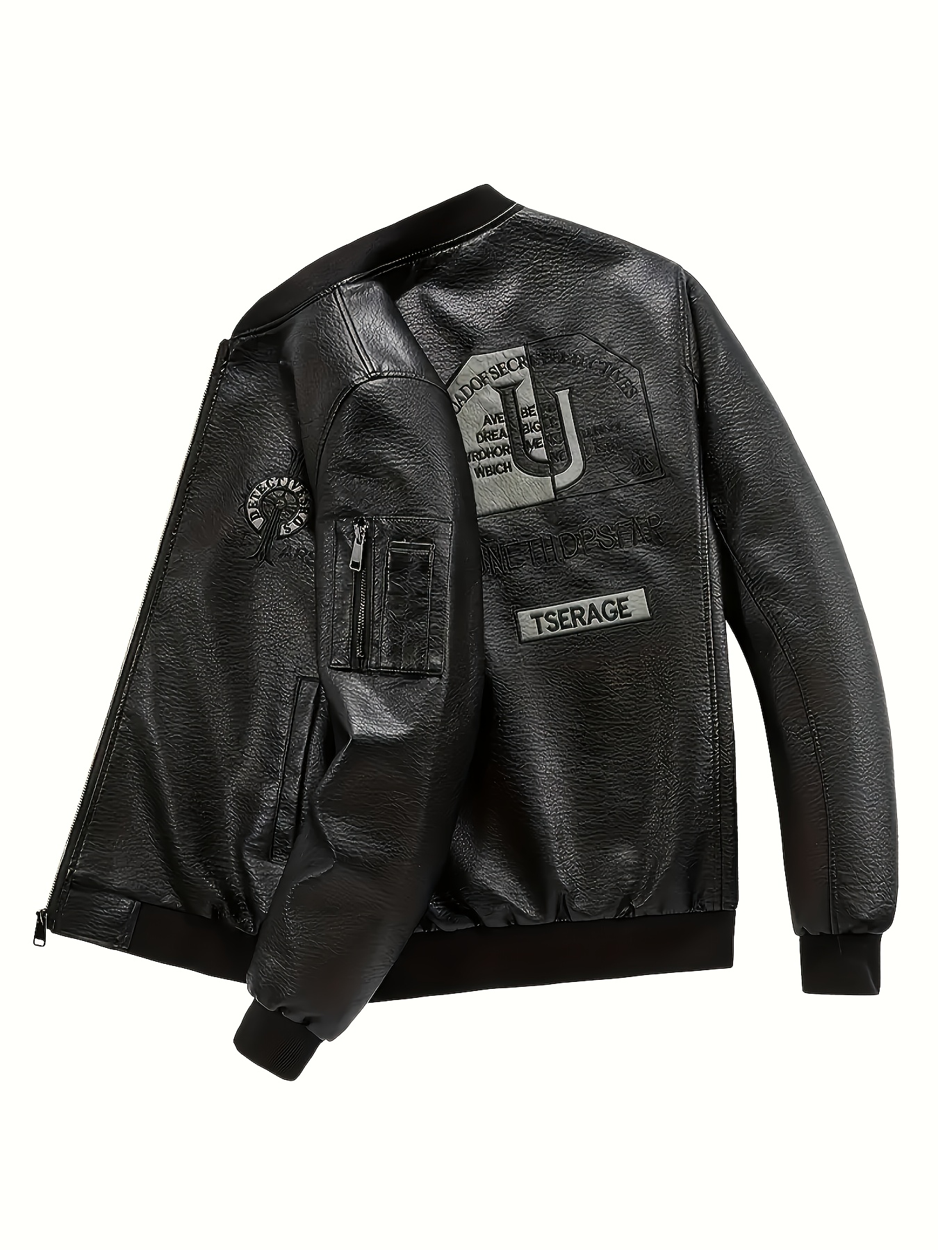 [Casual Faux Leather] Men's Casual Faux Leather Jacket | Regular Fit, Long Sleeve, Polyester Lined, Zipper Closure | Spring & Fall Outerwear