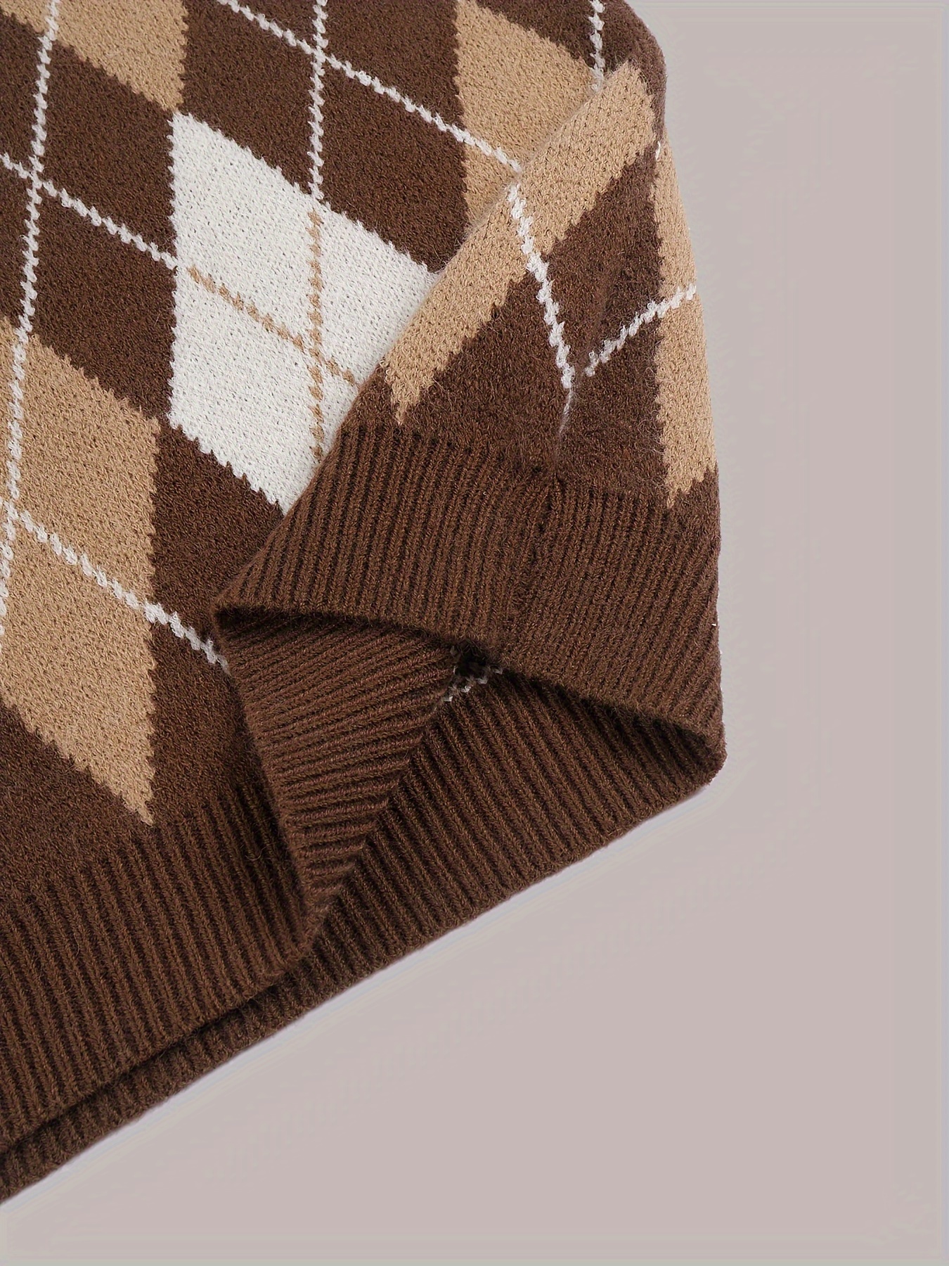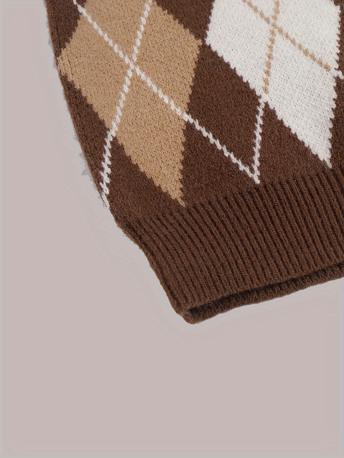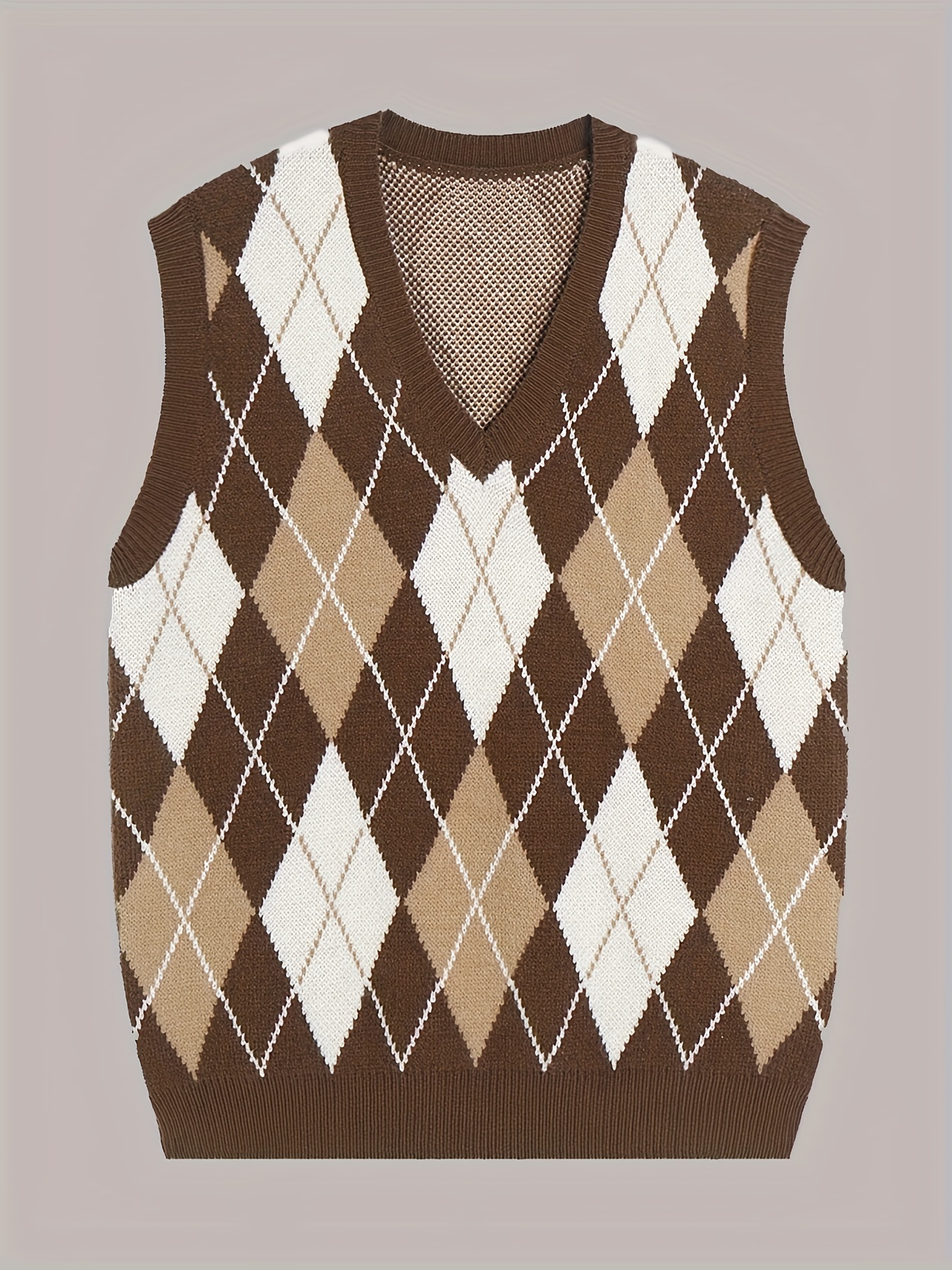 Men's Stylish Preppy Style Knit Vest, Sleeveless Sweater Vest, Casual Plaid Waistcoat