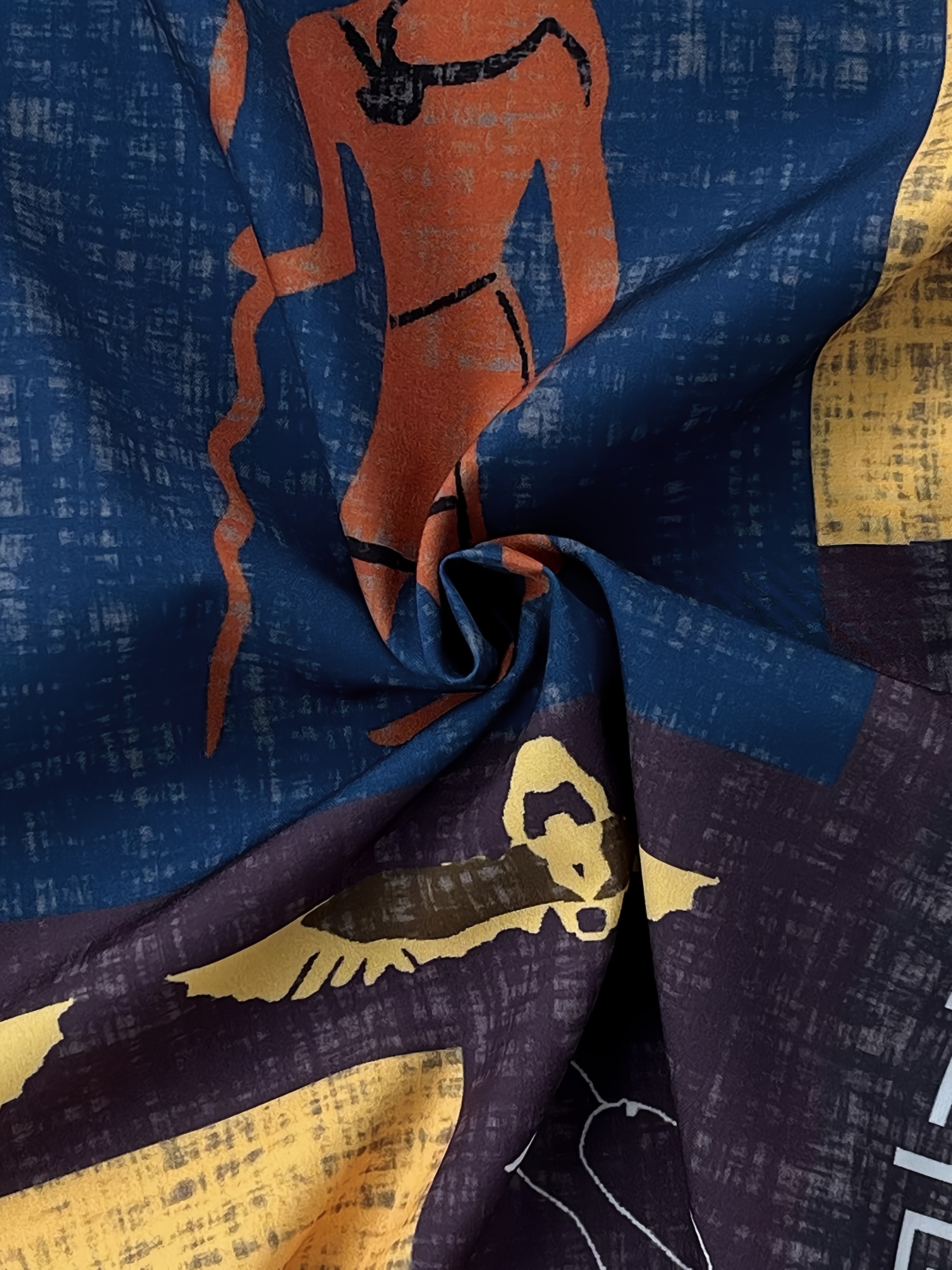 Men'S Vintage Egyptian-Inspired Geometric Art Print Short Sleeve Shirt - Casual Stand Collar, Button-Up, Non-Stretch Fabric, Regular Fit for Summer Outdoor & Casual Attire, All-Season Comfort, Summer Casual Wear | Artistic Print Shirt | Nonstretch F