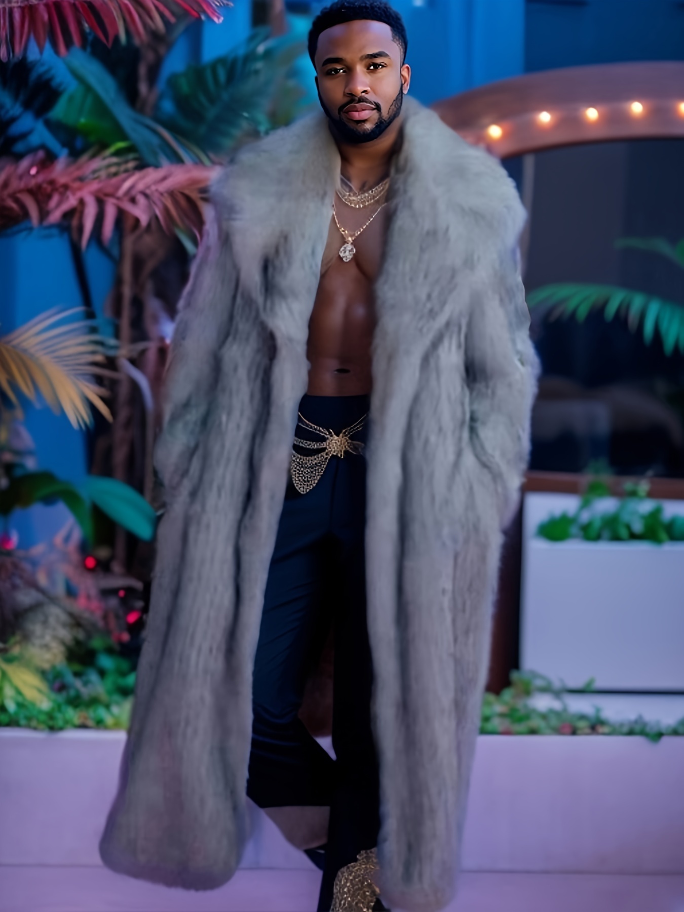[New Fox Fur Coat] Warm Fashion Mid-Length Fox Fur Plush Collar Suit Coat | Men's Casual Fleece Outerwear, Comfortable Loose Luxurious Grass Coat, New Thickened Versatile Trendy