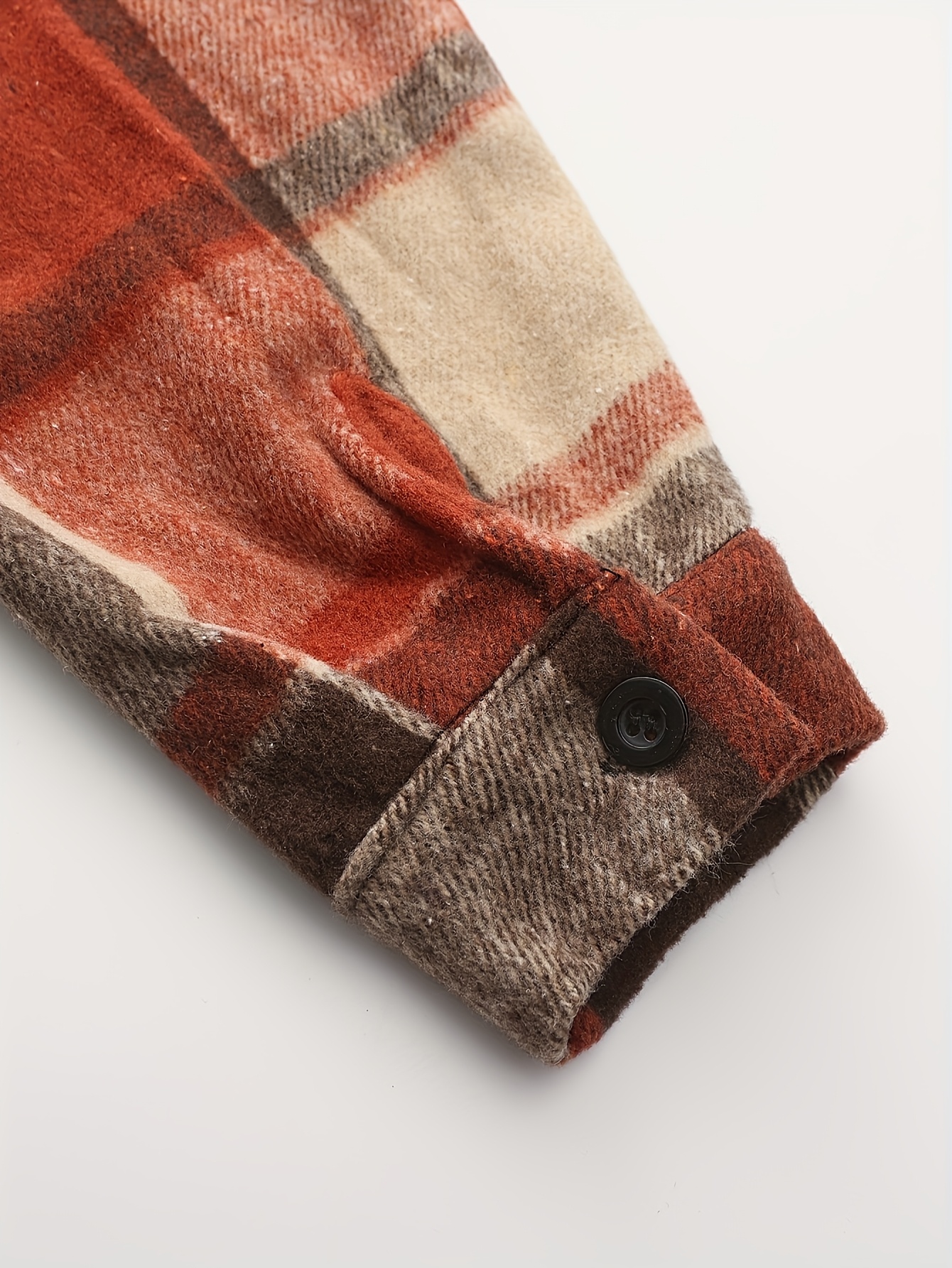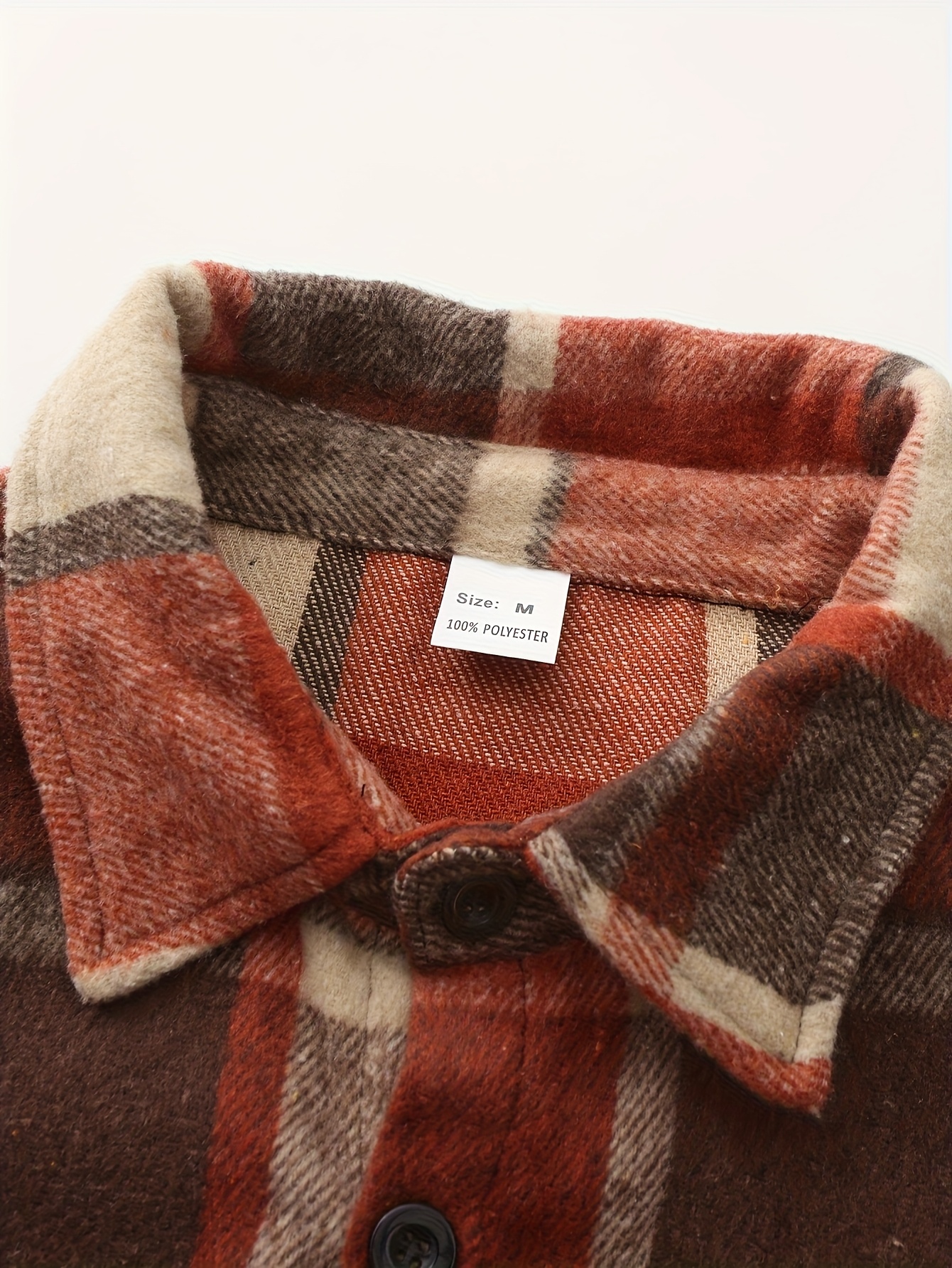 Men'S Casual Plaid Button-Up Shirt - Long Sleeve, Beige & Brown Check Pattern, Loose Fit, Lightweight Polyester Fabric, Perfect for Casual Attire