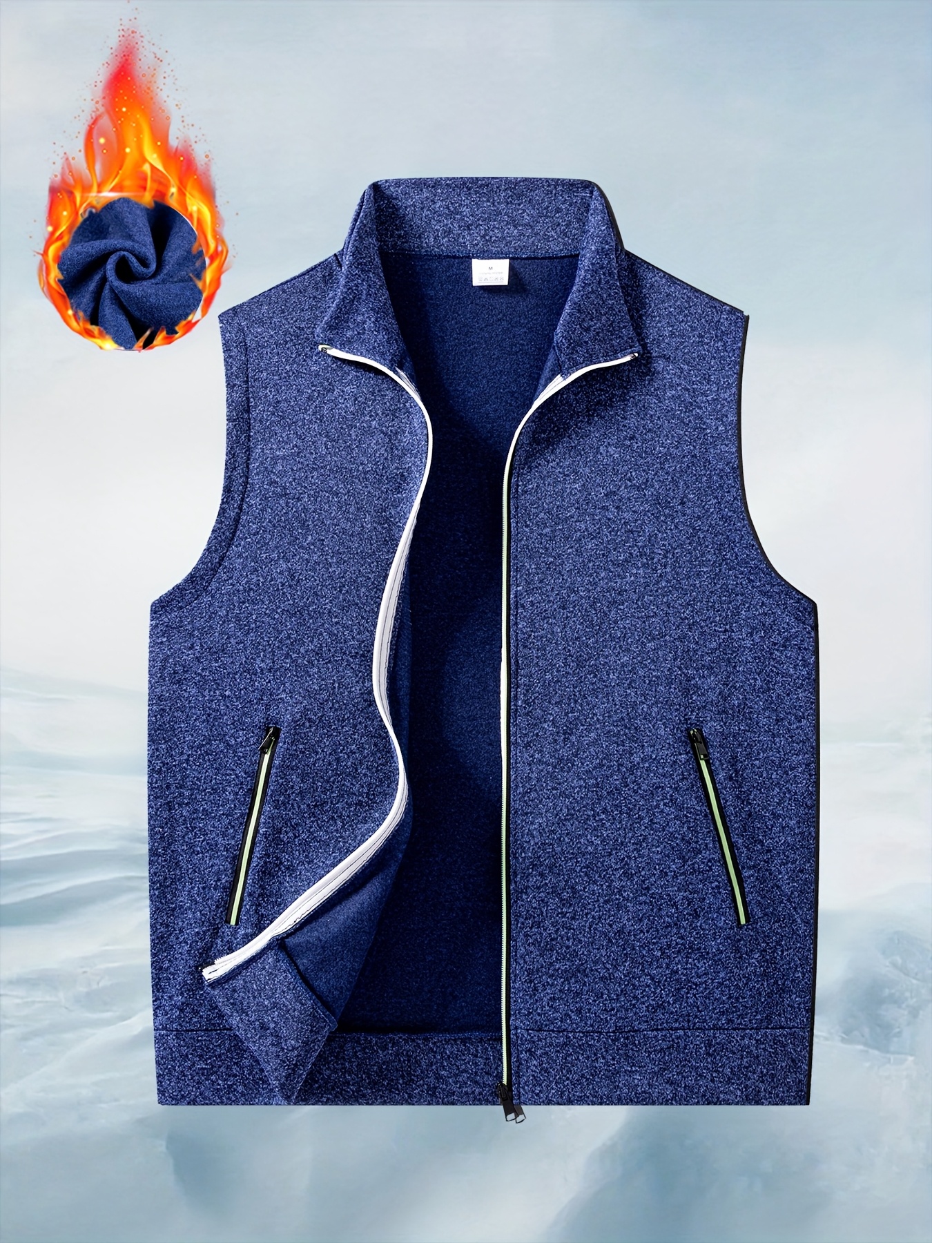 Men'S Cozy Fleece-Lined Sleeveless Vest - Maroon Zip-Up with Pockets, Retro Casual Style, Warm & Comfortable for Fall/Winter, Versatile Outdoor & Sporty Wear, Winter Vest, Sporty Vest, Minimalist Design, Soft Texture