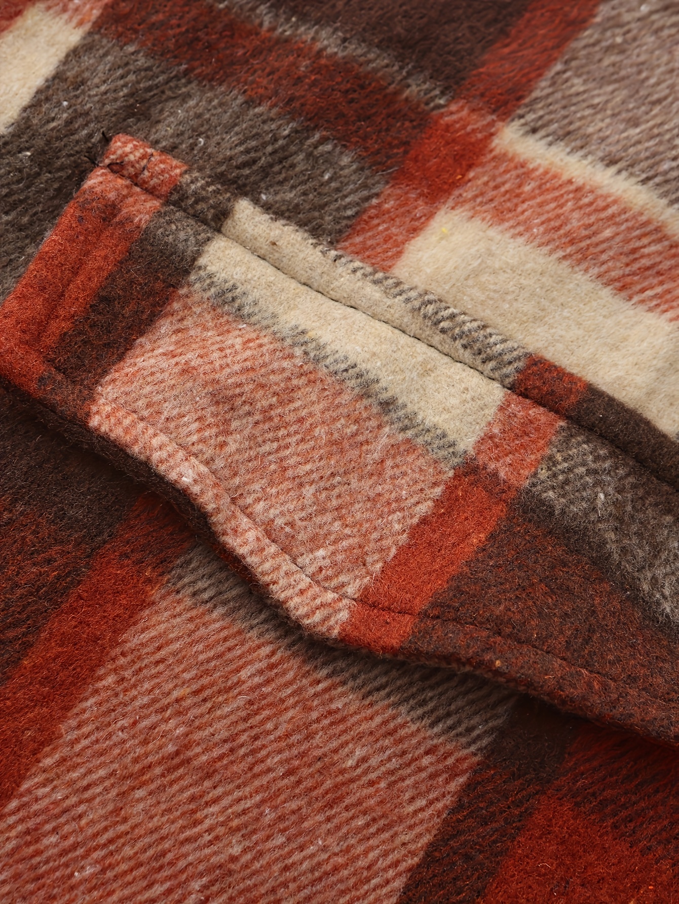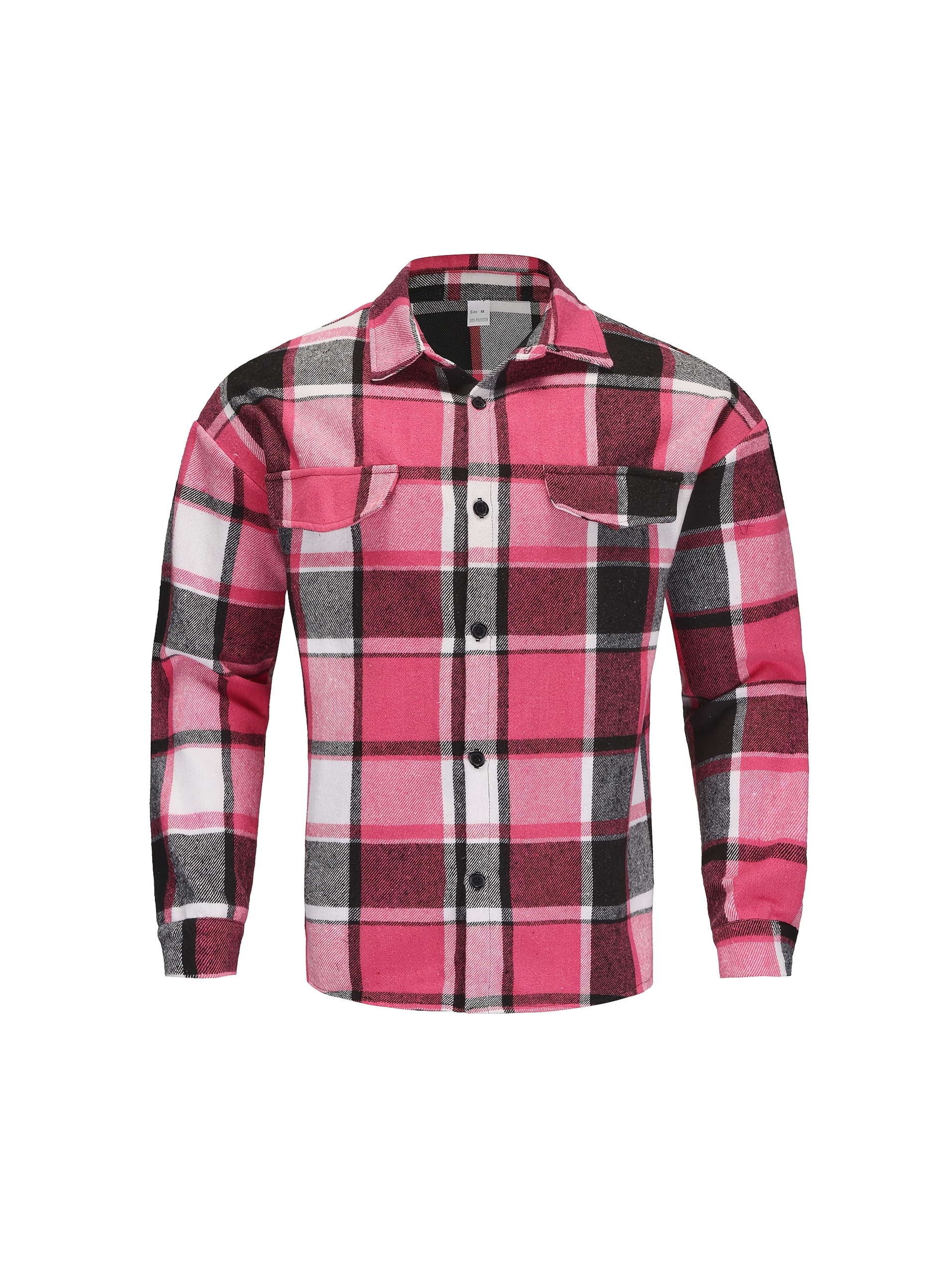 Men'S Casual Plaid Button-Up Shirt - Long Sleeve, Beige & Brown Check Pattern, Loose Fit, Lightweight Polyester Fabric, Perfect for Casual Attire