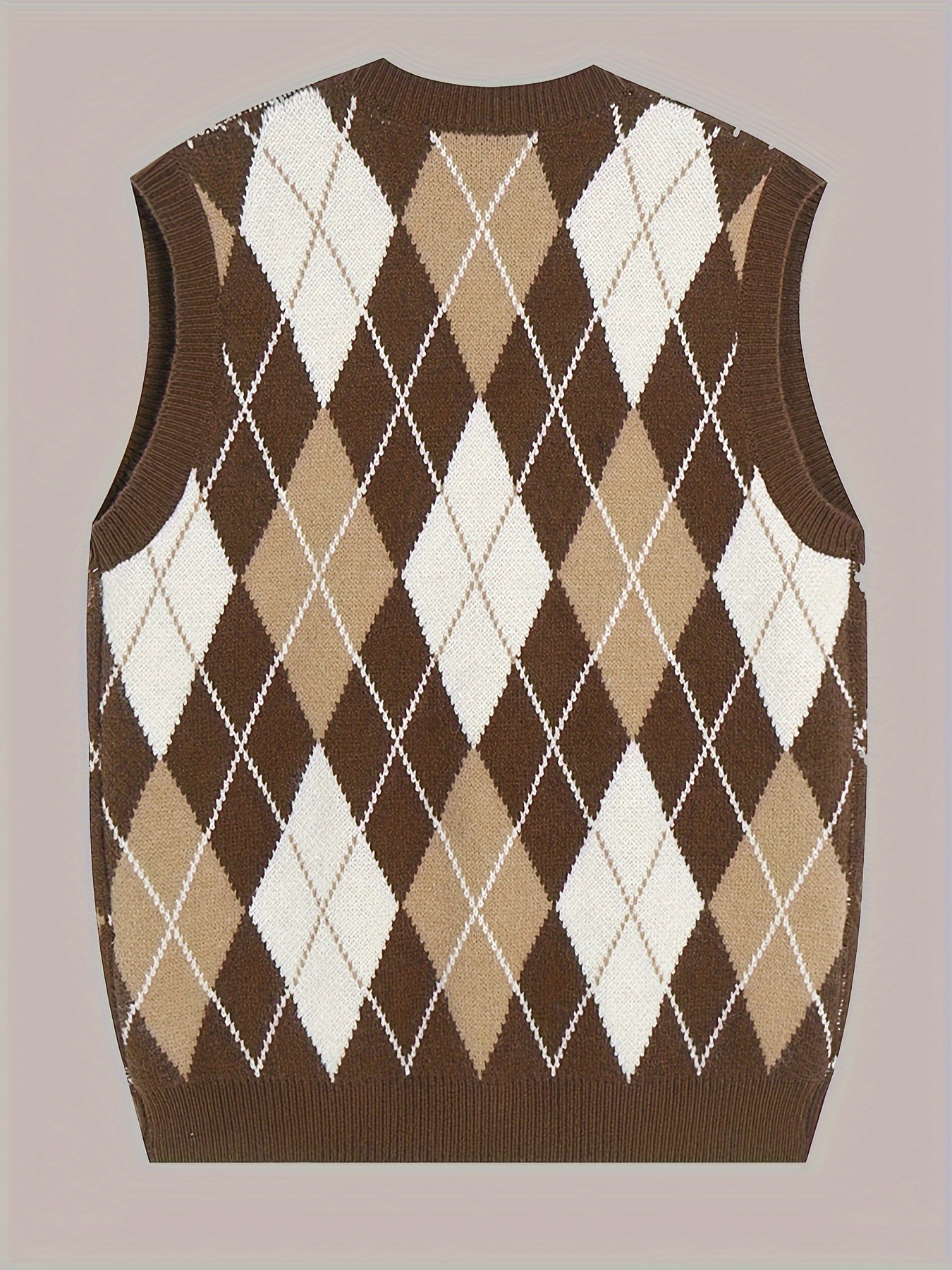 Men's Stylish Preppy Style Knit Vest, Sleeveless Sweater Vest, Casual Plaid Waistcoat