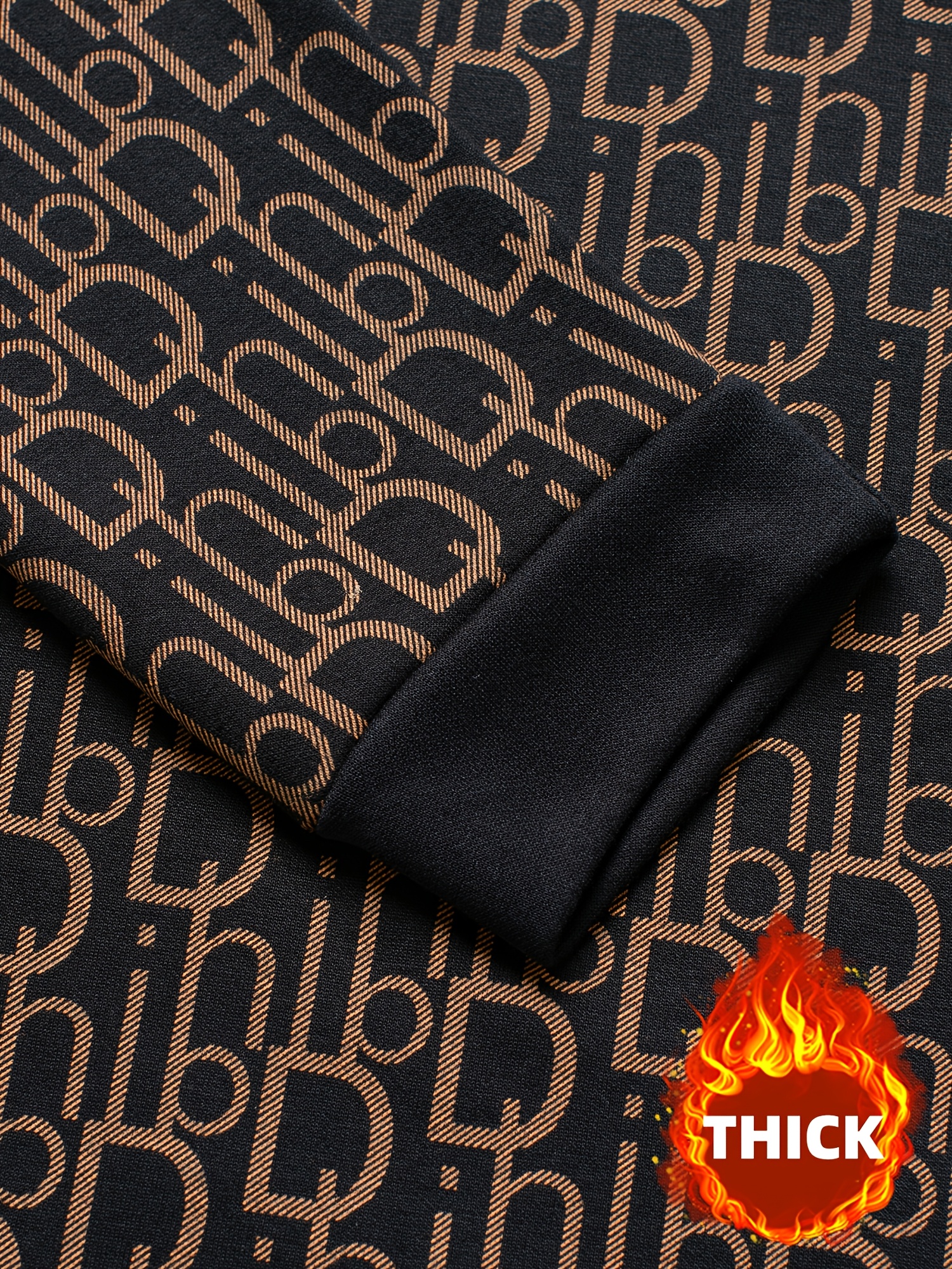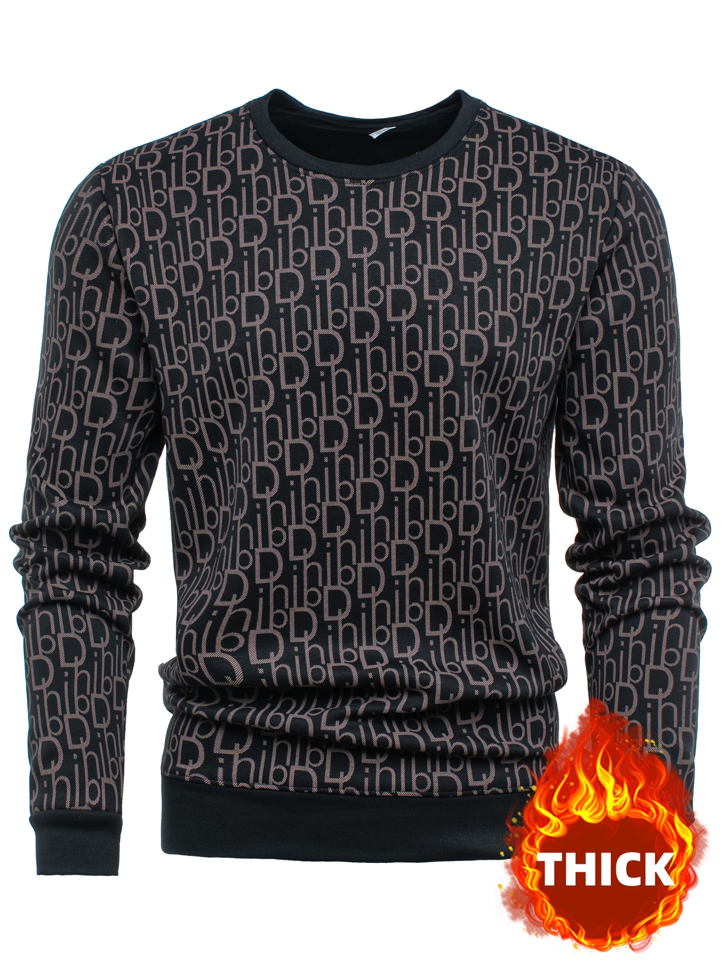 Men's Thermal Fleece-Lined Crewneck Sweatshirt - Thick Winter Warmth with Bold Letter Graphic, Soft Casual Long Sleeve Pullover, Machine Washable Cold Weather Gift for Him, Winter Sweaters, Cold Weather Apparel, Stylish Pullover