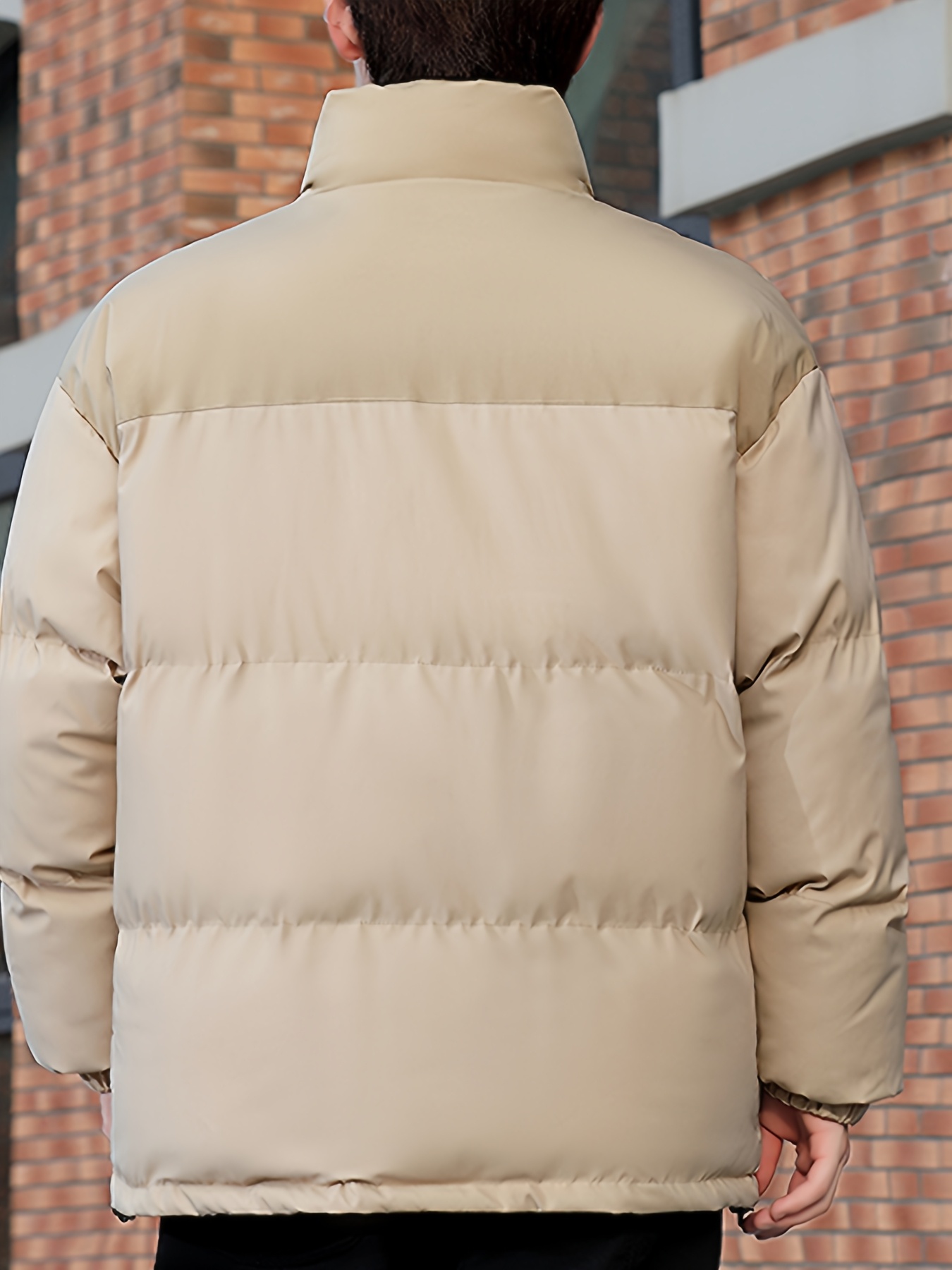 [Men's Winter Jacket] Polyester-Filled Men's Winter Jacket - Black & Casual Outdoor Warm Coat with Stand Collar, Regular Fit for Cold Weather, No Stretch Fabric